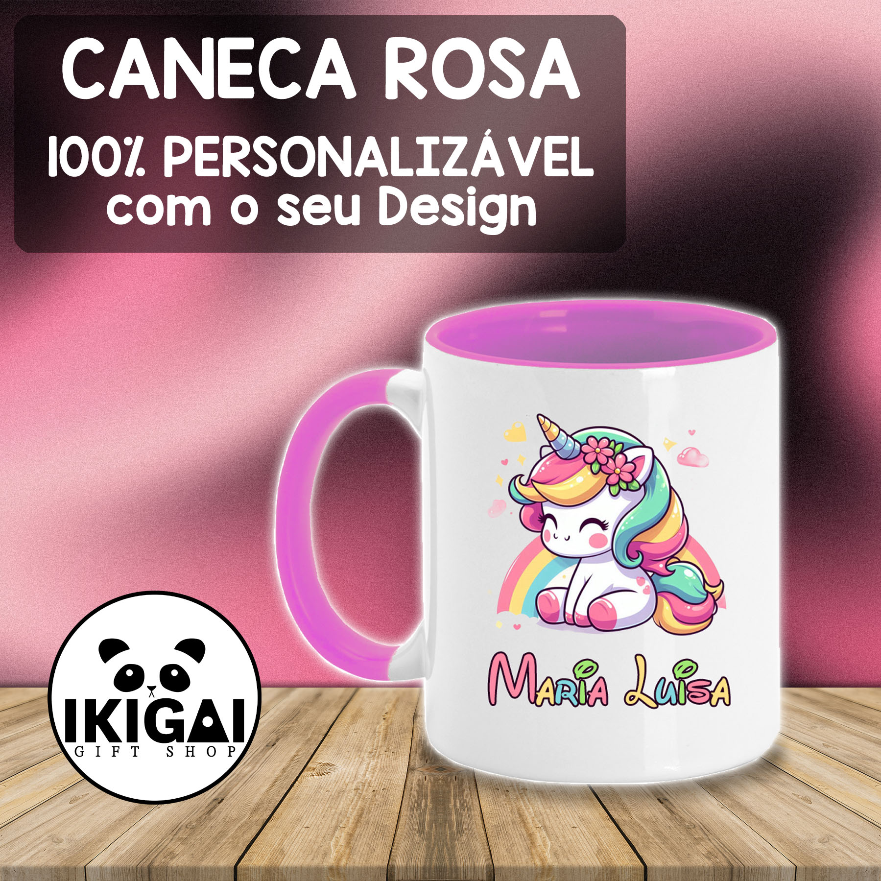Caneca Rosa Personalizada 8,50 € Desconto de % IVA incluído Partilhar Adicionar Contactar Caneca rosa 100% personalizável. Tamanho 9,5 x 8 cm - 325ml Personalização - Nomes e imagens (100% personalizável)